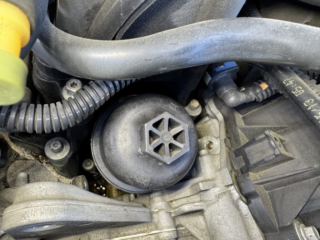JKラングラーあるあるのオイルフィルターハウジングからのオイル漏れ。