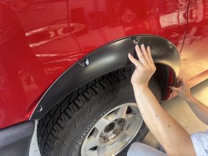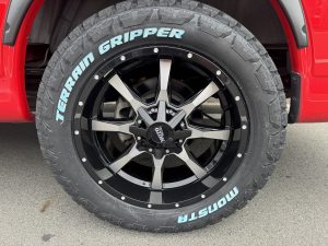 外径がかなり大きくなり干渉するのでフロントのタイヤハウスをすこーし加工。