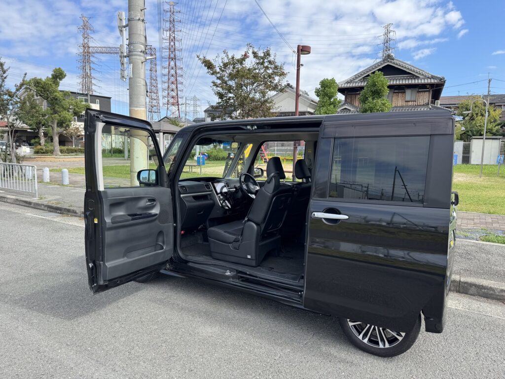 ドアも90度まで開閉、スライドドアもピラーレスで開口部もめちゃ広々。