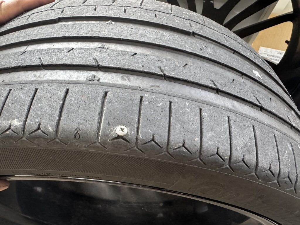 パンク修理が微妙な所に釘、リアタイヤが交換時期だった事もありついでに4本とも交換。